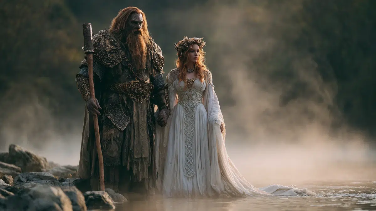 The story starts with the Dagda, a mighty god, and Boann, a goddess of the River Boyne. Their secret union led to Aengus’s birth. They used magic to hide his arrival, showing their incredible powers.