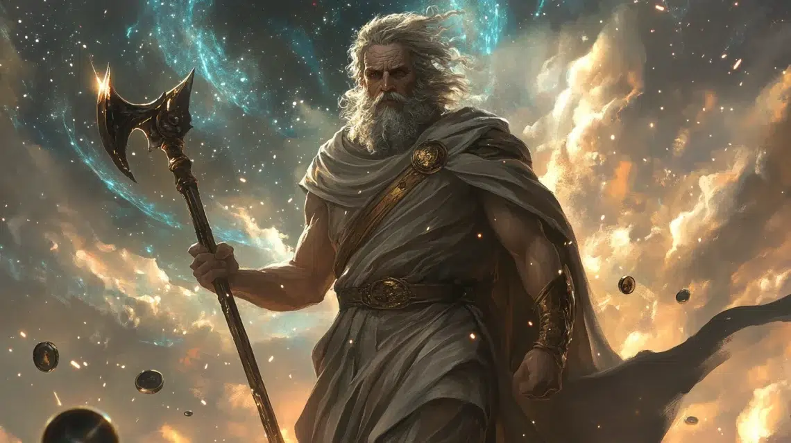 Zeus grew in secret, later returning to challenge his father. With Rhea’s guidance and Gaia’s support, Zeus freed his swallowed siblings and led them in the Titanomachy, overthrowing Cronus and fulfilling the prophecy.